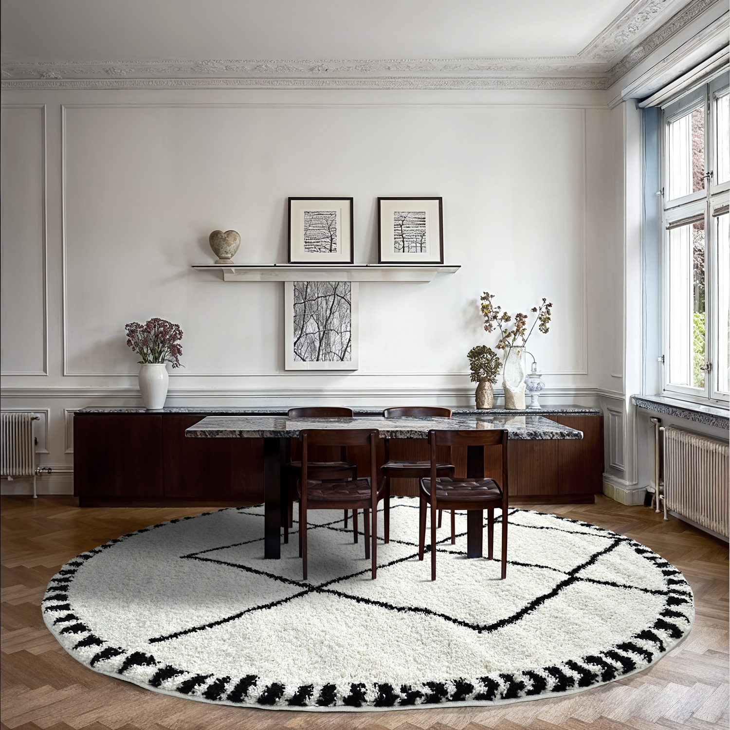 Care: Vacuum the rug with a flat nozzle; do not use a brush or anything that may get caught in the pile. For stains, wipe with a damp cloth or use carpet shampoo. For tougher stains, consult a professional carpet cleaner. The rug can be dried in sunlight.