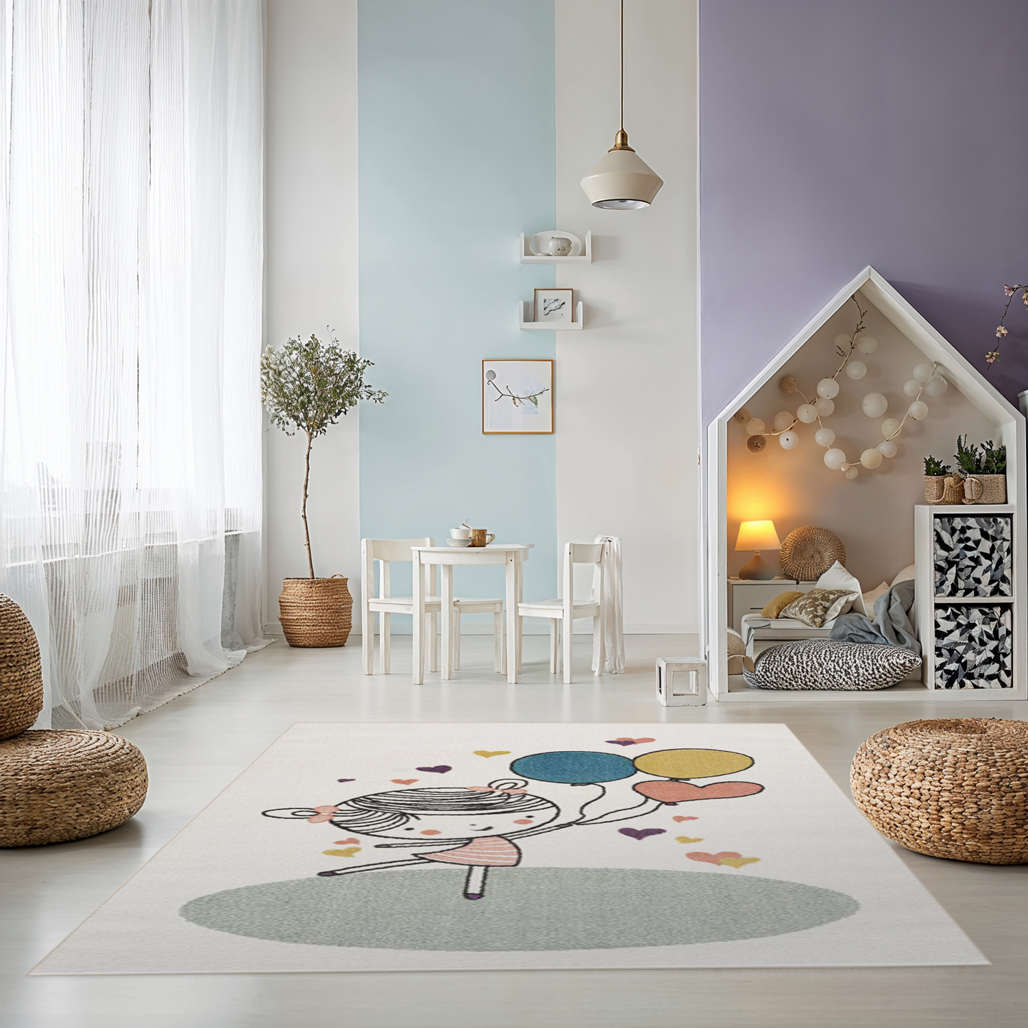 Childrens rugs - Balloon Girl (multi)