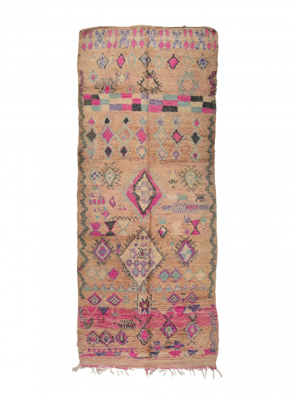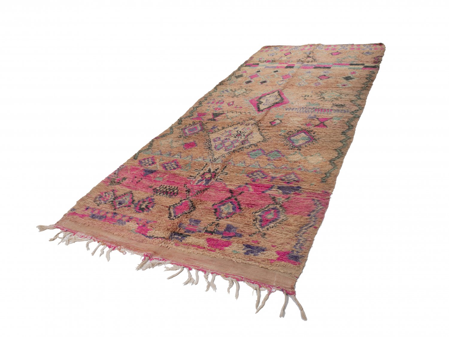 The creativity, execution, the irregular pattern, the sensational colour combinations - taste differs, but few people would protest if the Azilal was named the most beautiful rug in the world. It is a thing without peer that leaves no one unmoved. Moreover, it is made to 100 percent from natural substances. The white/naturally dyed background made from the wool of the mountain sheep and the bright colours originating from plants and berries that grow naturally in the impressive high mountain area that is the Azilal region.